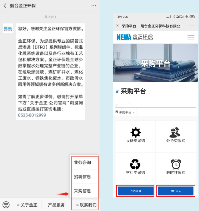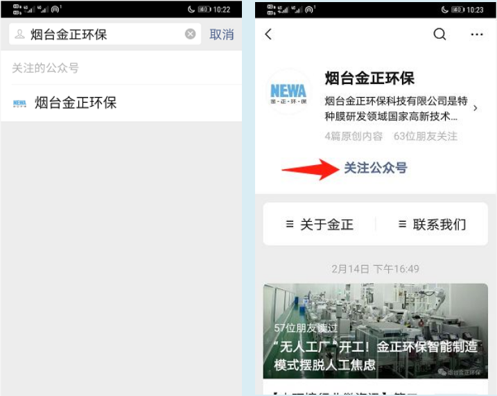 打開(kāi)手機(jī)微信,添加公眾號(hào)“煙臺(tái)金正環(huán)保”;